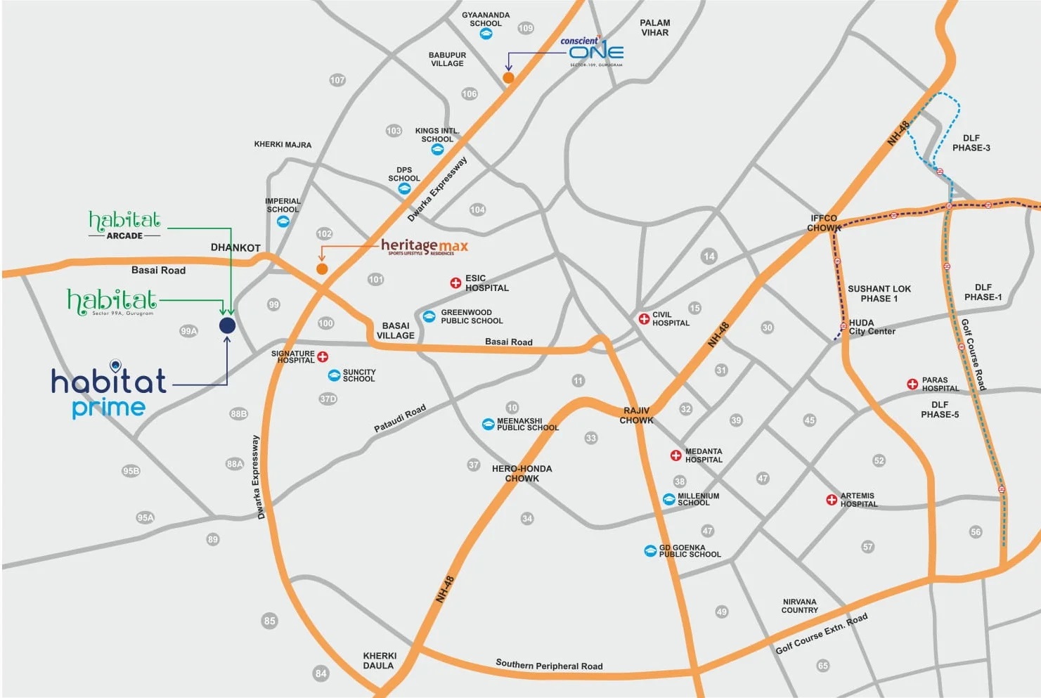 Conscient Habitat Prime Sector 99A Gurgaon is the best location if you wish to live a nice and tranquil life in Millennium City.